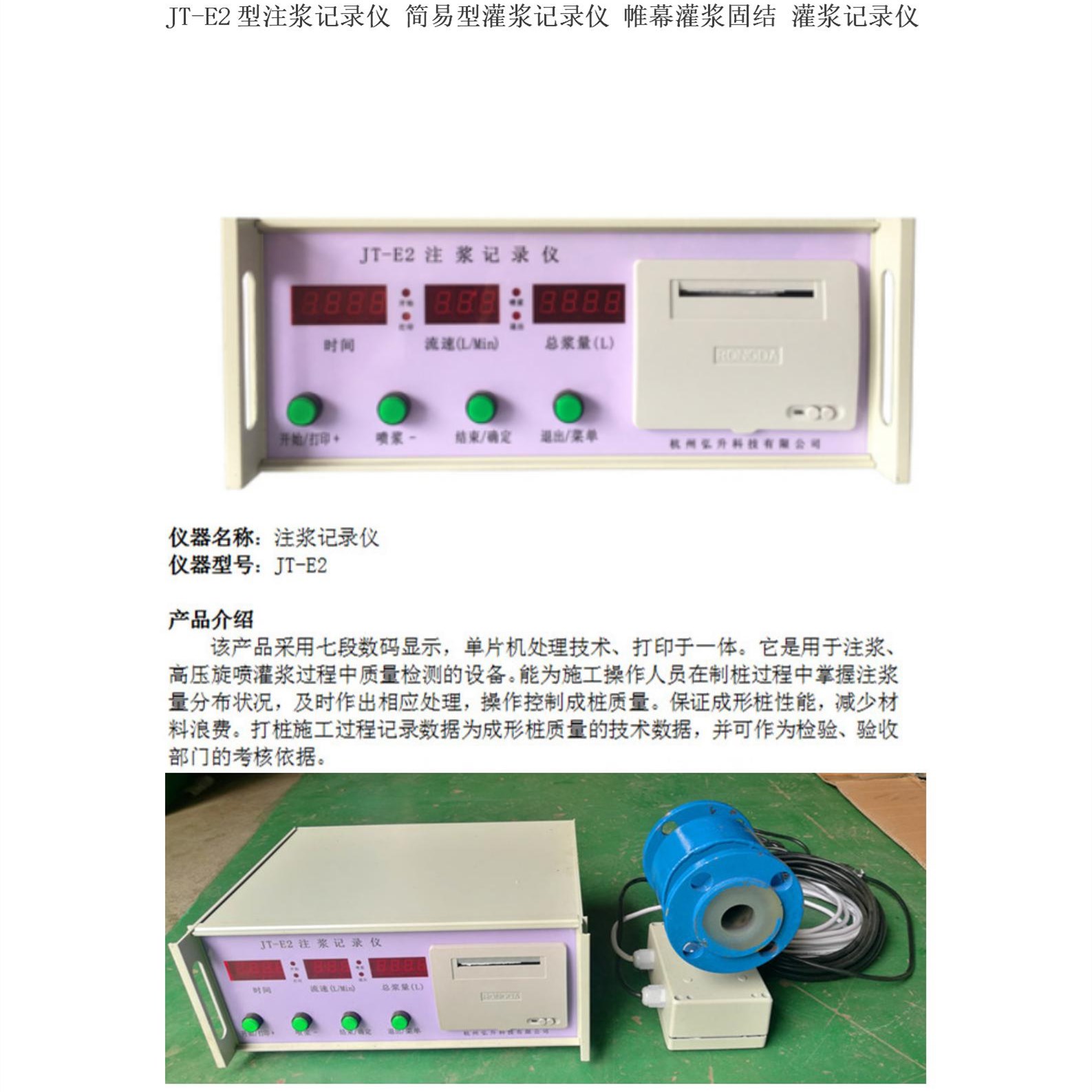 JT-E2灌漿記錄儀、JT-V9型灌漿記錄儀