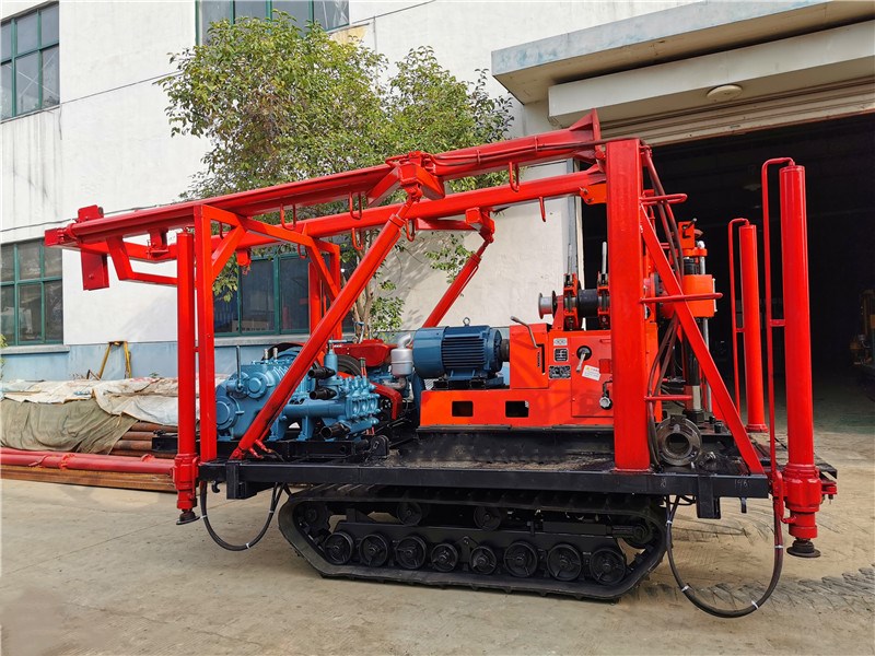 1、鉆機(jī)機(jī)組由履帶底盤、柴油機(jī)、鉆機(jī)及柴油機(jī)、雙液壓自動(dòng)起落伸縮式鉆塔(采用雙液壓鉆塔,升高型液壓油缸作支撐,操縱閥控制鉆塔起落、升降,操作省時(shí)省力,安全可靠)、泥漿泵組成。